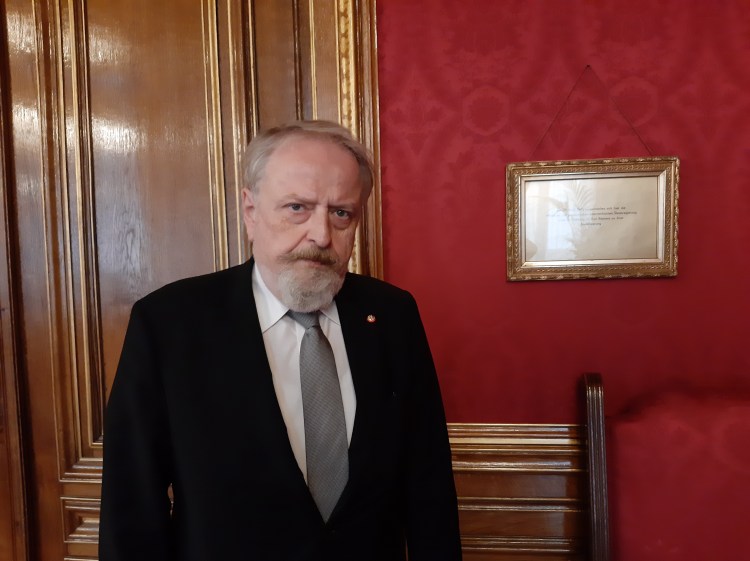 Die Bilder zeigen den SPÖ Bundesbildungsvorsitzenden Prof. Dr. Gerhard Schmid im Roten Salon des Wiener Rathauses. Hier wurde im April 1945 von Karl Renner die Zweite Republik gegründet.