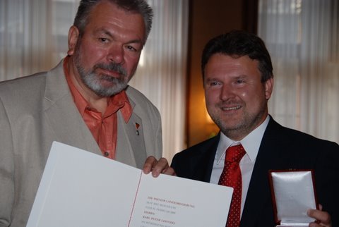 Landtagspräsident Ernst Woller, Vorsitzender der Wiener SPÖ-Bildung, und Gemeinderat Dr. Gerhard Schmid, Bundesbildungsvorsitzender der SPÖ trauern um Peter Lhotzky.
