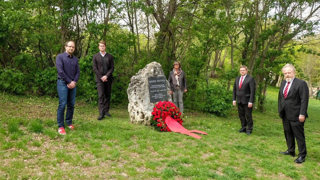 „Die Sozialdemokratie wird Heinz Nittel, seinem Engagement und seinem politischen Wirken stets ein ehrendes Andenken bewahren“, so Deutsch und Schmid bei der Kranzniederlegung am Gedenkstein für Heinz Nittel.