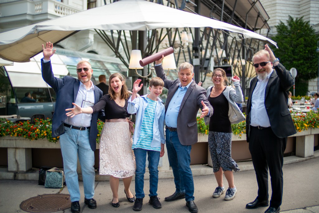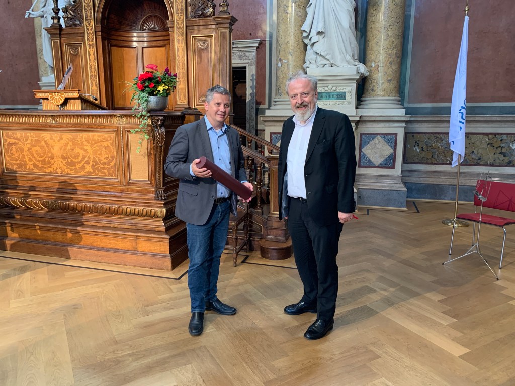 Die Feier konnte Corona-bedingt als auch Renovierungsarbeiten an der Universitätsbedingt erst 2,5 Jahre nach der Prüfung abgehalten werden…