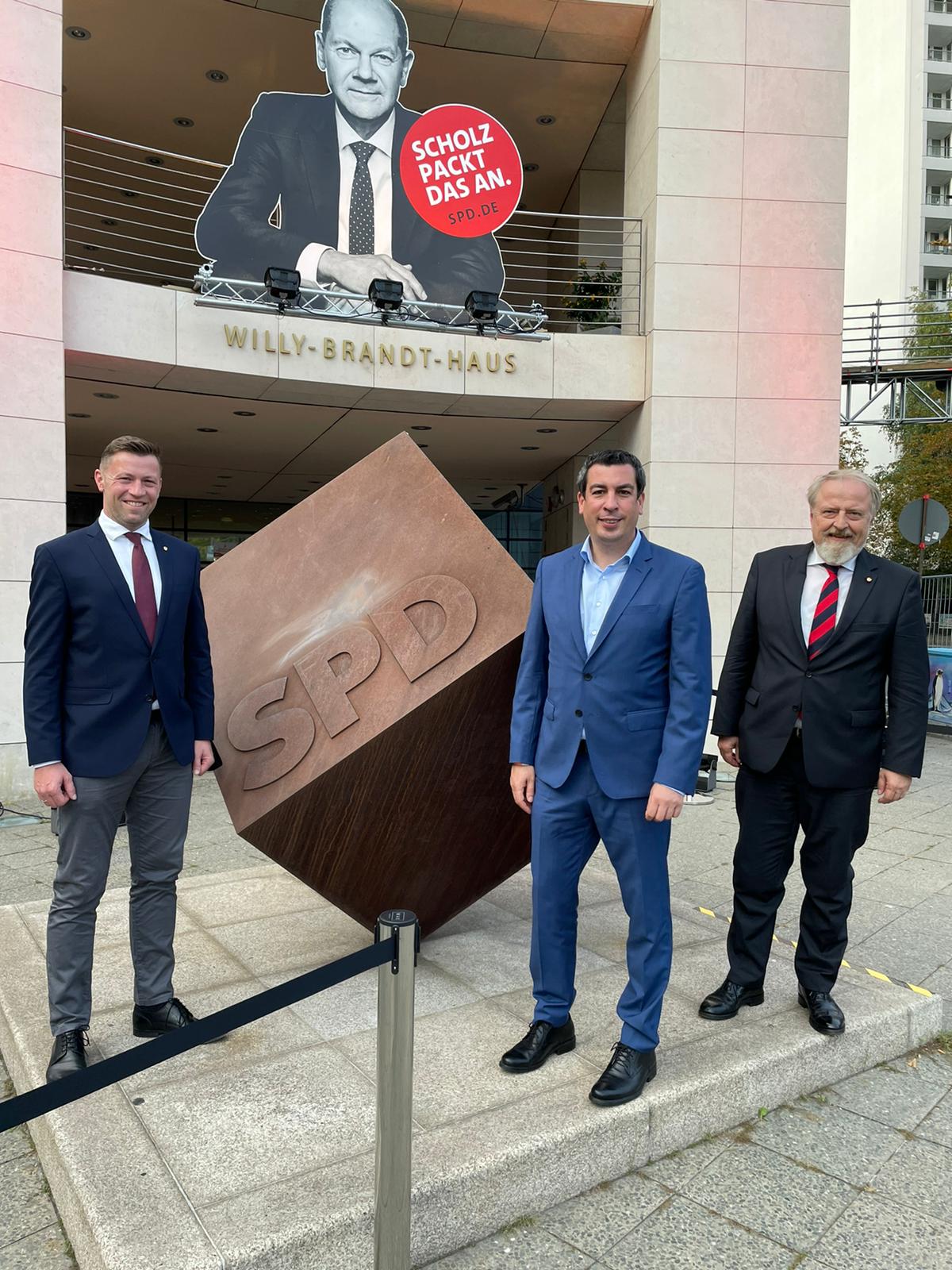 Seit vielen Jahren steht die SPÖ-Bildungsorganisation in engem Austausch mit den deutschen Genoss*innen. Zuletzt durfte eine Abordnung der SPÖ-Bundesbildungsorganisation, vertreten durch Gerhard Schmid, Günther Sidl und Marcus Schober sowie Wolfgang Markytan, am Wahlabend bei den Feierlichkeiten im Willy-Brandt-Haus mit dabei sein. Hoch die Internationale Solidarität!