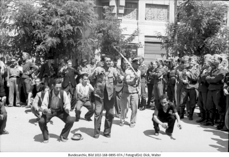 Veranstaltung, Text und Foto: Misshandlung der jüdischen Männer Salonikis bei der Registrierung auf dem Freiheitsplatz, 1942. B Arch 1011-168-0895-07A, Dick, Walter