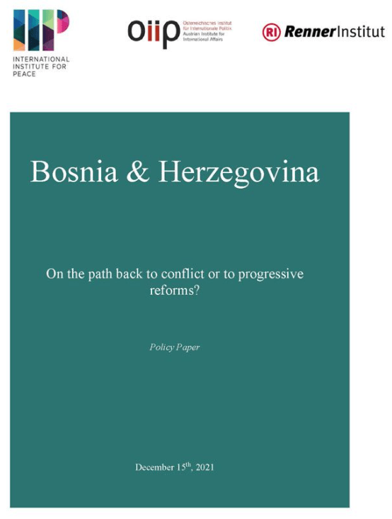 - Ein weiteres Policy Paper, das vom Karl-Renner-Institut, dem International Institute for Peace und dem Oiip herausgegeben wurde, bietet einen guten Überblick über die Probleme Bosnien und Herzegowinas auch abseits der gegenwärtigen Krise. Das Paper ist hier https://renner-institut.at/publication/bosnia-hercegovinaon-the-path-back-to-conflict-or-to-progressive-reforms zu lesen.