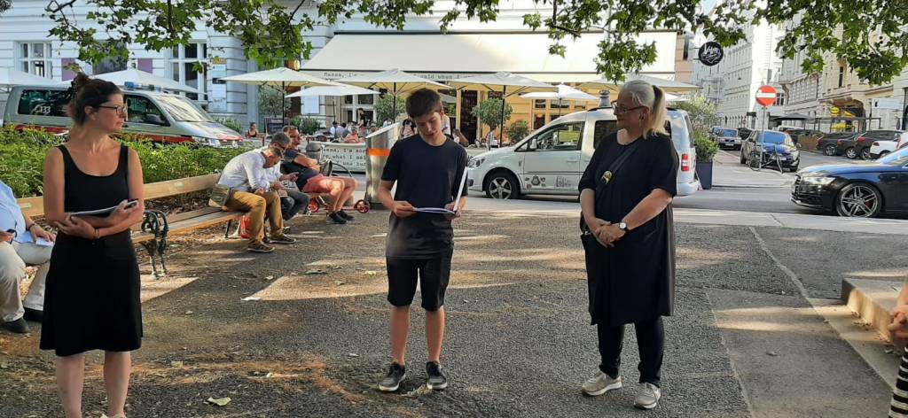 Am gestrigen Donnerstag, 28. Juli 2022 gestalteten Funktionär*innen der SPÖ Bildung Hernals sowie Parteischüler*innen gemeinsam mit dem Verein IM-MER Maly Trostinec die Gedenkfeier im öffentlichen Raum für 1.000 vertriebene Wienerinnen und Wiener am 28. Juli 1942.