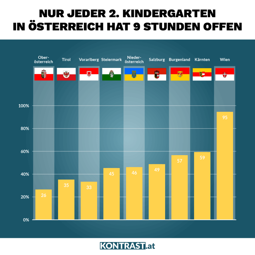 Eine gerechtere Aufteilung der unbezahlten Hausarbeit wäre demnach genauso wichtig wie der Rechtsanspruch auf Kinderbetreuung, so die Expertin. Denn in Österreich gibt es vielfach schlicht kaum Möglichkeiten, vor allem kleine Kinder in einer öffentlichen Einrichtung unterzubringen.
