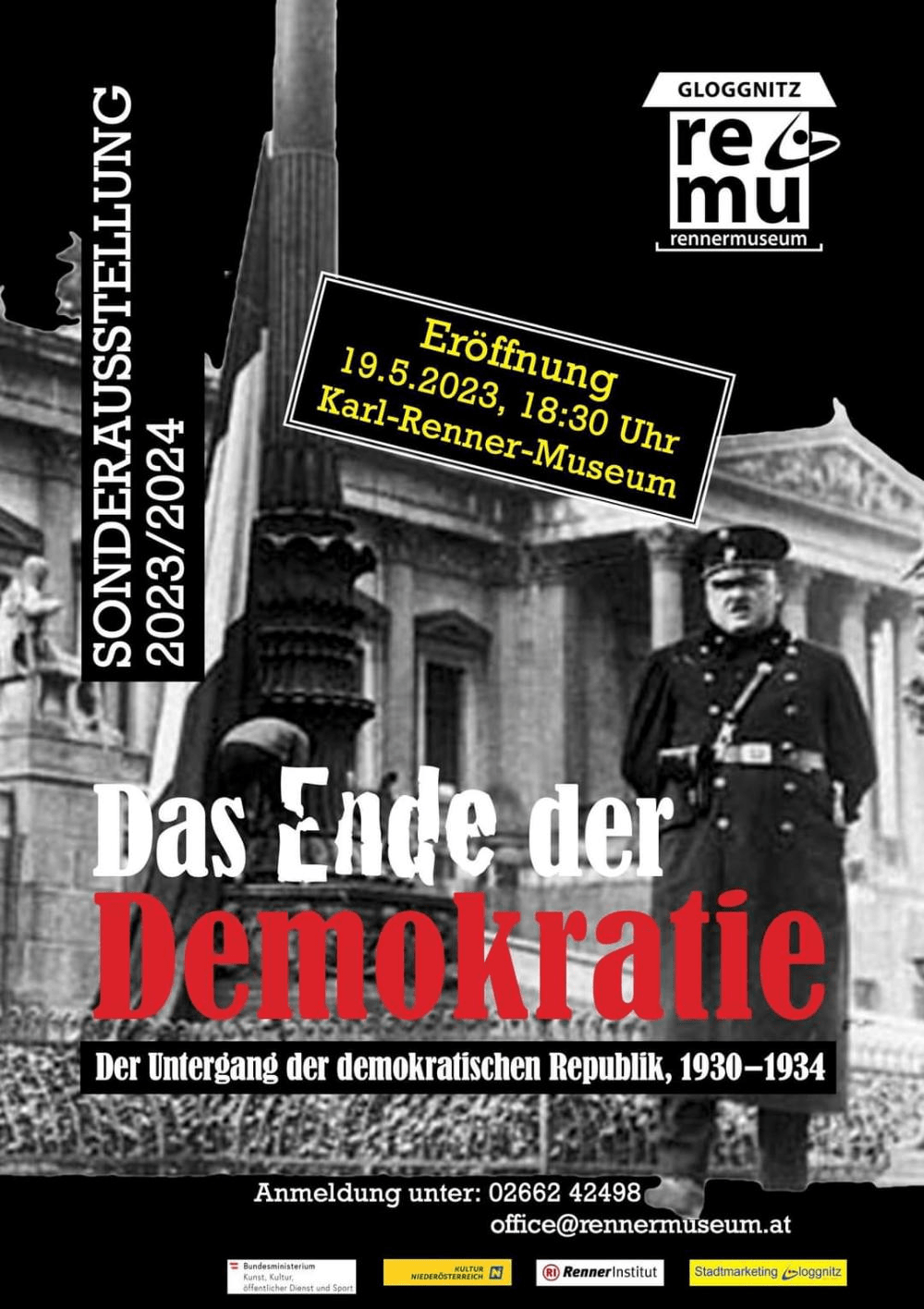 Das Dr. Karl Renner-Museum in Gloggnitz widmet der Ausschaltung des Parlaments 1933 unter dem Titel „Das Ende der Demokratie – Der Untergang der demokratischen Republik 1930 bis 1934“ eine von unserem stellvertretenden Direktor Michael Rosecker kuratierte Sonderausstellung. Wenige historische Ereignisse werden bis heute dermaßen kontroversiell diskutiert wie die Geschäftsordnungskrise des österreichischen Parlaments am 4. März 1933, die von der bürgerlichen Regierung für einen Staatsstreich und schließlich für die Errichtung einer Diktatur genutzt wurde.