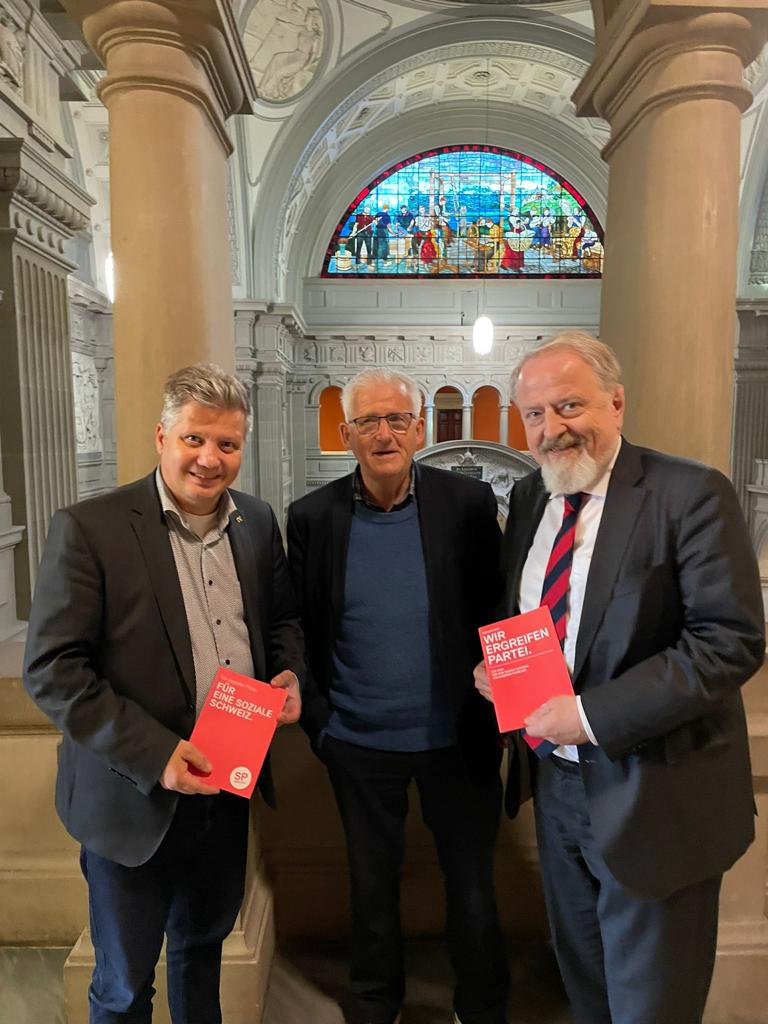 Besuch im Berner Rathaus mit Ueli Egger, Grossrat, Co-Präsident SP Kanton Bern und ev. weiteren Grossratsvertreter*innen, Bernadette Häfliger sowie Szabolcs Mihalyi (Kommission für Ressourcen, Wirtschaft, Sicherheit und Umwelt), Halua Pinto de Magalhães,