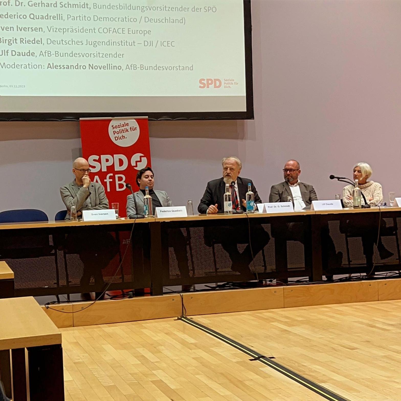 Eine Delegation der SPÖ-Bundesbildung unter der Leitung des Vorsitzenden der SPÖ-Bundesbildungsorganisation, Prof. Dr. Gerhard Schmid, besuchte auf Einladung des Vorsitzenden Ulf Daude die Bundeskonferenz der Partnerorganisation Arbeitsgemeinschaft für Bildung in der SPD (AfB) im Willy Brandt-Haus in Berlin. Auf dem umfangreichen Programm standen zahlreiche Gespräche, unter anderem mit Bundestagsabgeordneten Ruppert Stüwe (Bildung, Forschung) im Bundestag sowie mit dem Vizepräsidenten Dennis Bucher. Außerdem auf der Tagesordnung der Besuch des Berliner Abgeordnetenhauses (Preußischer Landtag) und der österreichischen Botschaft sowie Gespräche mit der Gesandtin Elisabeth Riederer und Botschafter Michael Linhart. Es folgte ein Treffen mit dem SPD-Generalsekretär Kevin Kühnert und der SPD-Vorsitzenden Saskia Esken. Darüber hinaus nahm der SPÖ-Bundesbildungsvorsitzende Gerhard Schmid im Rahmen der Bundeskonferenz der AfB an einer spannenden internationalen Podiumsdiskussion teil. Gerhard Schmid gratulierte Ulf Daude herzlich zu dessen Wiederwahl als AfB-Vorsitzender.