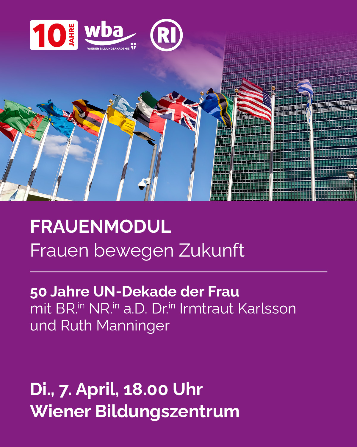 Die Veranstaltung geht der Frage nach, welche Ziele mit der UN-Dekade verfolgt wurden, was in Österreich konkret umgesetzt werden konnte und warum heute kein Jahr und keine Dekade der Frau mehr ausgerufen werden. Abschließend wird diskutiert, welche Forderungen auch heute noch aktuell und notwendig sind.