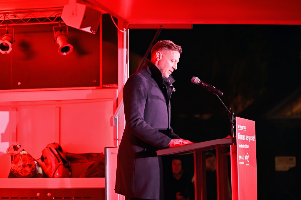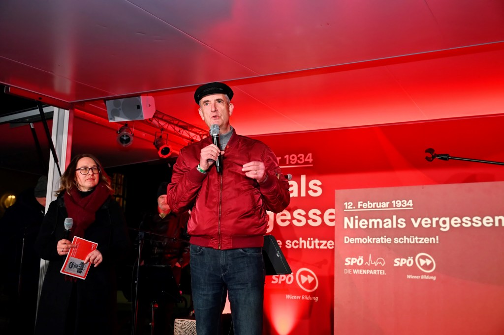 Einen besonderen Akzent setzte die künstlerische Gestaltung des Abends. SPÖ-Bundesbildungsgeschäftsführer Wolfgang Markytan betonte: „Das Gedenken an den 12. Februar 1934 ist nicht nur ein Erinnern, ein Zurückblicken, sondern auch ein Blick in die Gegenwart – oder sogar in die Zukunft. Darum ist es wichtig, dieses Gedenken nicht immer nur mit denselben traditionellen Elementen zu verbinden. Heute wurde eine künstlerische Performance dargeboten, die sehr beeindruckend war. Nina Abrahamczik trat als die Witwe, Bernd Herger als einer der Söhne von Karl Münchreiter auf. Sie präsentierten eine Lesung, unterstützt vom Performancekünstler Adrian Dorfmeister-Pölzer. Das ist genau die gelungene Art und Weise, wie ein solches Gedenken gelebt werden soll – mit klarem Fokus auf die Geschichte und zugleich mit der Frage, was wir für heute mitnehmen können – nicht als anbetende Asche, sondern als Weitergabe des Feuers.“