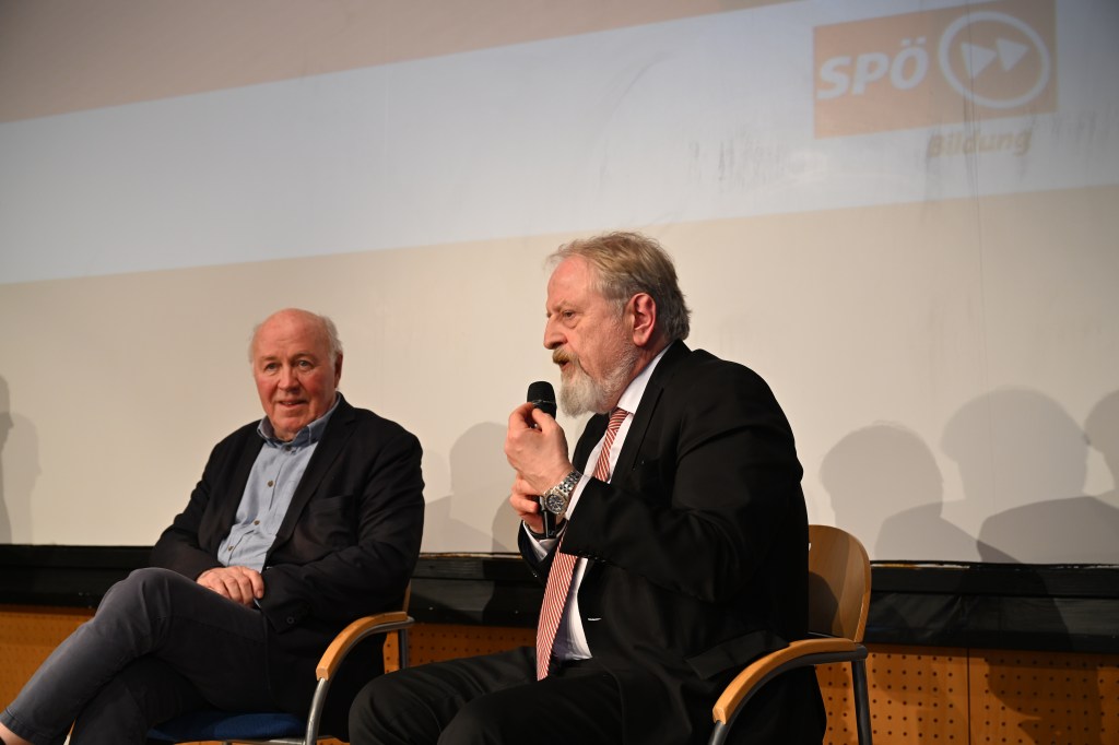 In der abschließenden Gesprächsrunde diskutierten der ehemalige Chefredakteur Dr. Herbert Lackner sowie der SPÖ-Bundesbildungsvorsitzende und Dritte Wiener Landtagspräsident Prof. Dr. Gerhard Schmid über aktuelle Gefährdungen der Demokratie. Lackner verwies auf politische Entwicklungen sowie den zunehmenden Einfluss wirtschaftlicher Macht auf Medien und Politik. Schmid ergänzte, dass Demokratie kein Selbstläufer sei, sondern aktiv gestaltet werden müsse: „Demokratie muss ständig in Bewegung gehalten und aktiv verteidigt werden.“