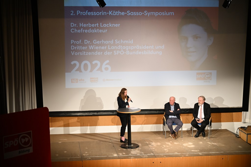 Vizebürgermeisterin Kathrin Gaal eröffnete das Symposium mit einem Blick auf Favoriten als traditionsreichen Bezirk der Arbeiter:innenbewegung. Sie erinnerte an die Geschichte des Roten Wien und hob insbesondere die Errungenschaften im Wohnbau hervor. Gleichzeitig warnte sie vor aktuellen demokratiepolitischen Herausforderungen wie wachsendem Antisemitismus und rechtsextremen Ideologien. Käthe Sasso würdigte sie als prägende Persönlichkeit der Erinnerungskultur, deren Vermächtnis heute weitergetragen werden müsse. „Umso wichtiger sind klare Haltung, Wachsamkeit und Widerstand“, so Gaal.