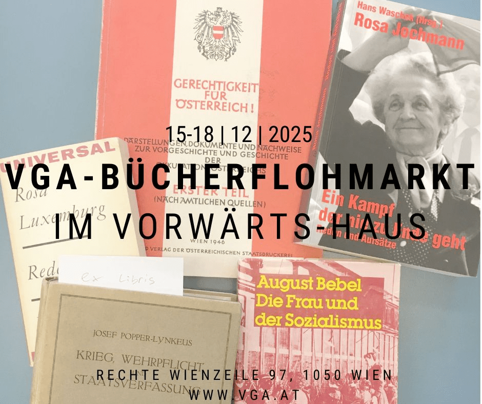 Liebe Kolleg:innen und Freund:innen, auch heuer veranstalten wir im Verein für Geschichte der ArbeiterInnenbewegung wieder unseren Bücherflohmarkt. Eine gute Gelegenheit, um Weihnachtsgeschenke für sich selber oder andere zu finden – wir freuen uns, Sie/Euch bei dieser Gelegenheit im Vorwärts-Haus zu sehen! Wir trennen uns von doppelten Beständen, Raritäten und Sammler:innenstücken. Sozialistika von Adler bis Zetkin, Politik, Zeitgeschichte, Sachbücher„6. Dezember 2025: Terminvorschau: Bücherflohmarkt: Sozialistika von Adler bis Zetkin – von 15. bis 18. Dezember 2025 im Vorwärts-Haus, 1050 Wien“ weiterlesen