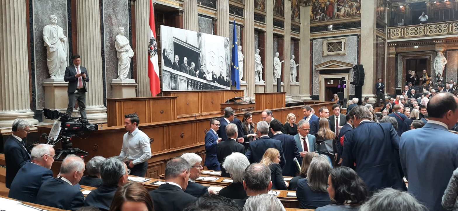 Nochmals dürfen wir hier an dieser Stelle an diesen würdigen Festakt erinnern, die Links zur Fotogalerie bzw. zur Nachschau der Übertragung, das Transkript sowie Fotos finden Sie hier: https://www.parlament.gv.at/aktuelles/mediathek/XXVIII/VER/20 https://www.parlament.gv.at/aktuelles/mediathek/fotos/veranstaltung/2025/20250515-festakt-70-jahre-staatsvertrag Programm Eröffnungsworte Walter RosenkranzPräsident des Nationalrates Peter HaubnerZweiter Präsident des Nationalrates Doris BuresDritte Präsidentin des Nationalrates Im Gespräch Heinz FischerBundespräsident a.D., Präsident des Nationalrates a.D.„17. Mai 2025: Nachschau: 70 Jahre Staatsvertrag: Festakt vom 15. Mai 2025 im Parlament würdigte Österreichs Neutralität – nun online: Video zum Nachschauen und Fotogalerie“ weiterlesen