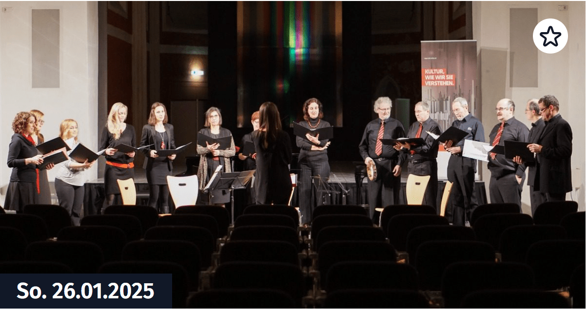 Sonntag, 26. Jänner 2025Beginn: 11:00 UhrOrt: Minoriten Wels, Rainerstraße 2, Wels, Oberösterreich Eine Veranstaltung zum internationalen Holocaust Gedenktag. Rund um den Vortrag von Dr. Walser zum Thema Gewalt und Rassismus gibt es Chormusik von Erich Zeisl und Hugo Kauder zu hören, beide Komponisten, die 1938 in die USA emigrieren mussten. Fachkundig eingeführt werden die„26. Jänner 2025: KLANG ZEICHEN SETZEN – Eine Veranstaltung gegen Gewalt zum Internationalen Holocaust-Gedenktag“ weiterlesen