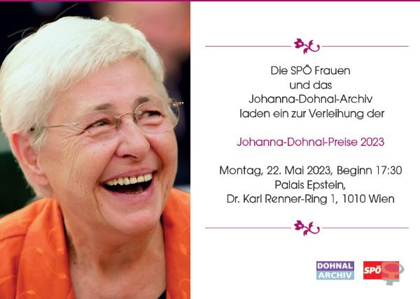 12. Mai 2023: Einladung: Verleihung der Johanna-Dohnal Preise 2023