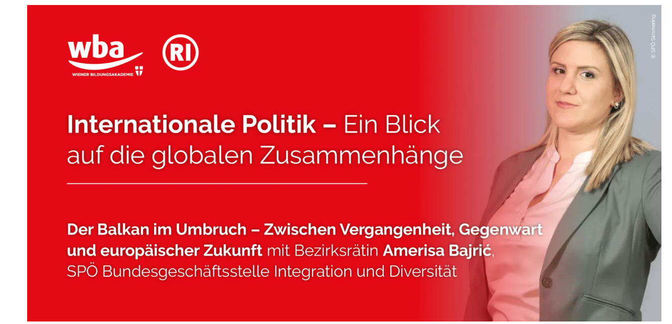 23. September 2025: Terminvorschau: „Der Balkan im Umbruch – Zwischen Vergangenheit, Gegenwart und europäischer Zukunft“ mit Amerisa Bajrić – im Wiener Bildungszentrum am 30. September 2025